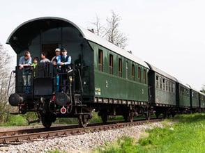 Als Verbindung zwischen dem öffentlichen Schienennetz im ÖBB-Bahnhof Timelkam und dem Museum in Ampflwang betreibt die ÖGEG eine eigene, 10,5 km lange Museumsbahn. Auf der halbstündigen Fahrt durch Wälder und über Felder entlang des Ampflwanger Baches können Sie in unseren Dampfzügen oder unserem Nostalgie-Schienenbus noch Bahnfahren wie zu Omas Zeiten erleben.